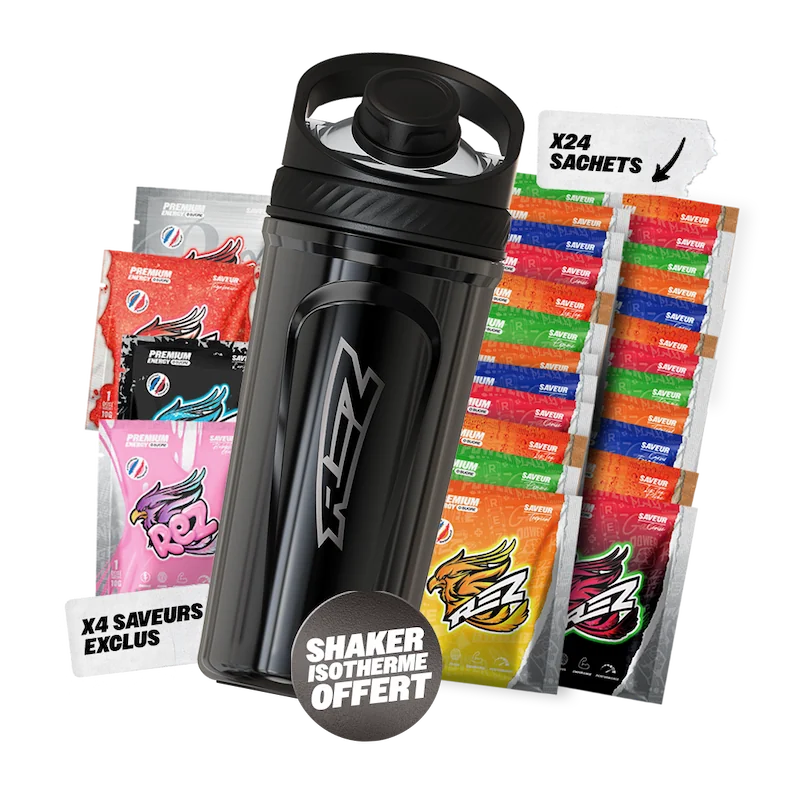 Opte pour le Pack Starter comprenant un shaker XL isotherme et nos sachets monodoses aux saveurs fruitées, 100% naturelles 🍃 et authentiques, validées par +200 000 fans!